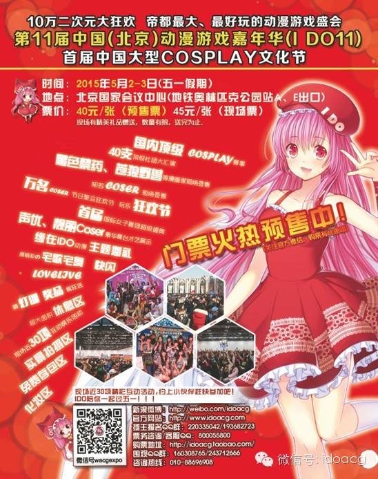 第十一届中国(北京)动漫游戏嘉年华(I DO11)即将于5月2-3日在国家会议中心召开,本次I DO依旧是活动丰富、奖品丰厚!!!o(≧ω≦)o