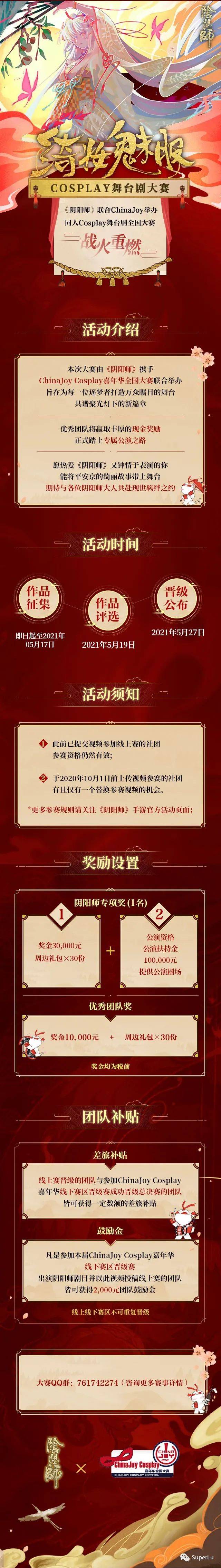 参赛者可自由组队 以《阴阳师》手游为主题创作剧目参赛。既可以参加《阴阳师》线上赛区投稿,也可以参加ChinaJoy Cosplay嘉年华全国大赛线下赛区获得晋级机会。