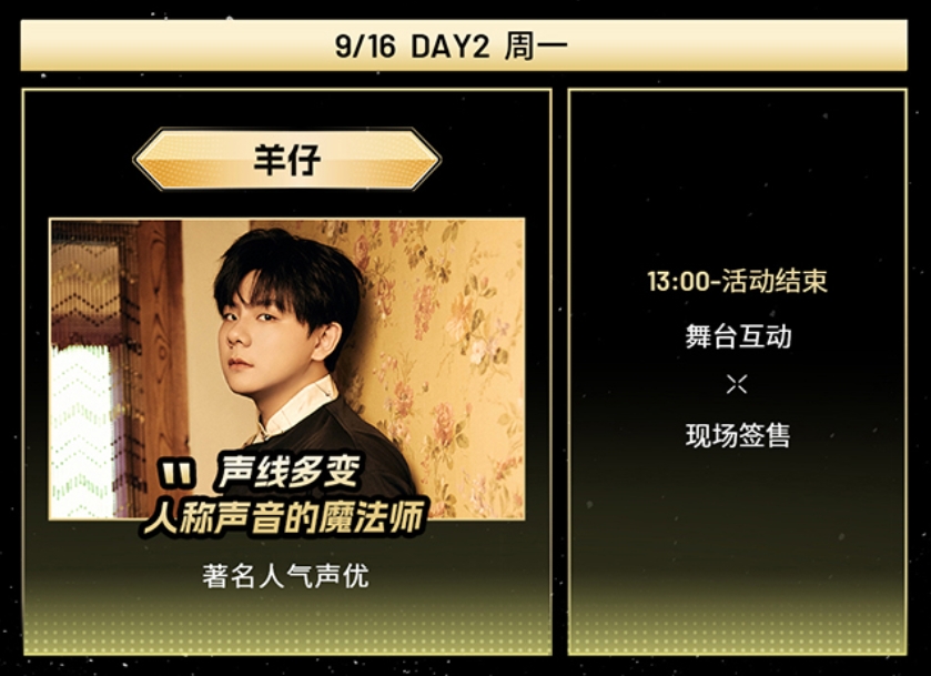 9月16日13:00开始,羊仔将在杭州CJMF·不止音乐节的次元舞台开启营业模式,与所有来到现场的小伙伴进行互动,现场无论是内场的舞台互动区还是外场互动区,人人都能照顾到的那种哦!温馨提示:即使没有抢到票,依然可以看到互动全过程哦~