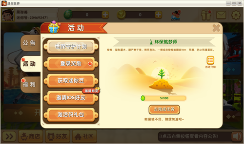 而《迷你世界》的“线上植树”是一种新的尝试,其设计理念就是为青少年传递“守护世界”这一概念,以“游戏+公益”的方式,逐步传递出生态环保、低碳生活和消除气候贫困等等的公益理念。通过喜闻乐见的形式,将社会责任感植入下一代。孩子玩着游戏,不知不觉就能了解到目前全球土地荒漠化严重的情况。